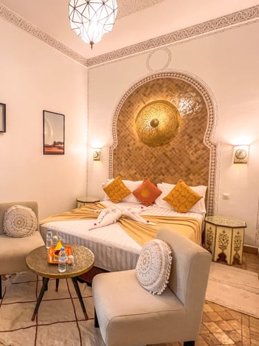 Le riad propose un nombre limité de chambres, garantissant une ambiance calme et personnalisée.